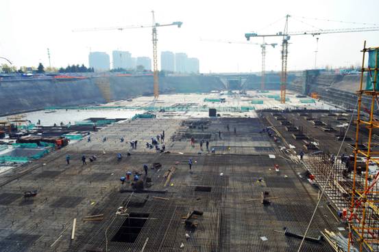 日前,由黃發集團負責的新區市民中心項目快速推進。項目于9月5日全面開工建設,施工現場塔吊林立、機械轟鳴,呈現出一派如火如荼的施工場景。截至目前,已完成深基坑開挖及邊坡支護施工,累計開挖及外運土石方約50萬方;完成5部塔吊樹立;完成基礎墊層、抗浮錨桿施工;正在進行底板防水、防水保護層以及底板鋼筋加工(其中底板防水完成20000平方米,進場鋼筋1800噸);完成海王路地下通道負二層結構施工。